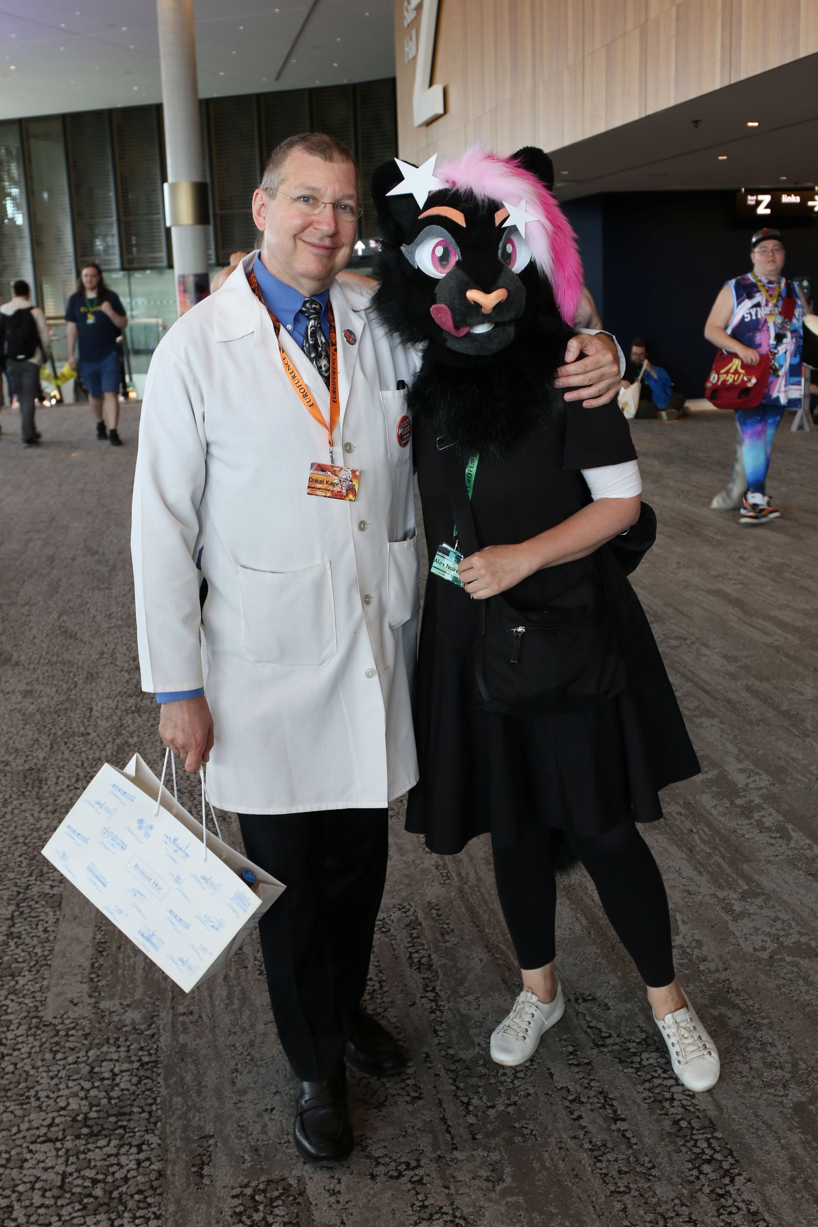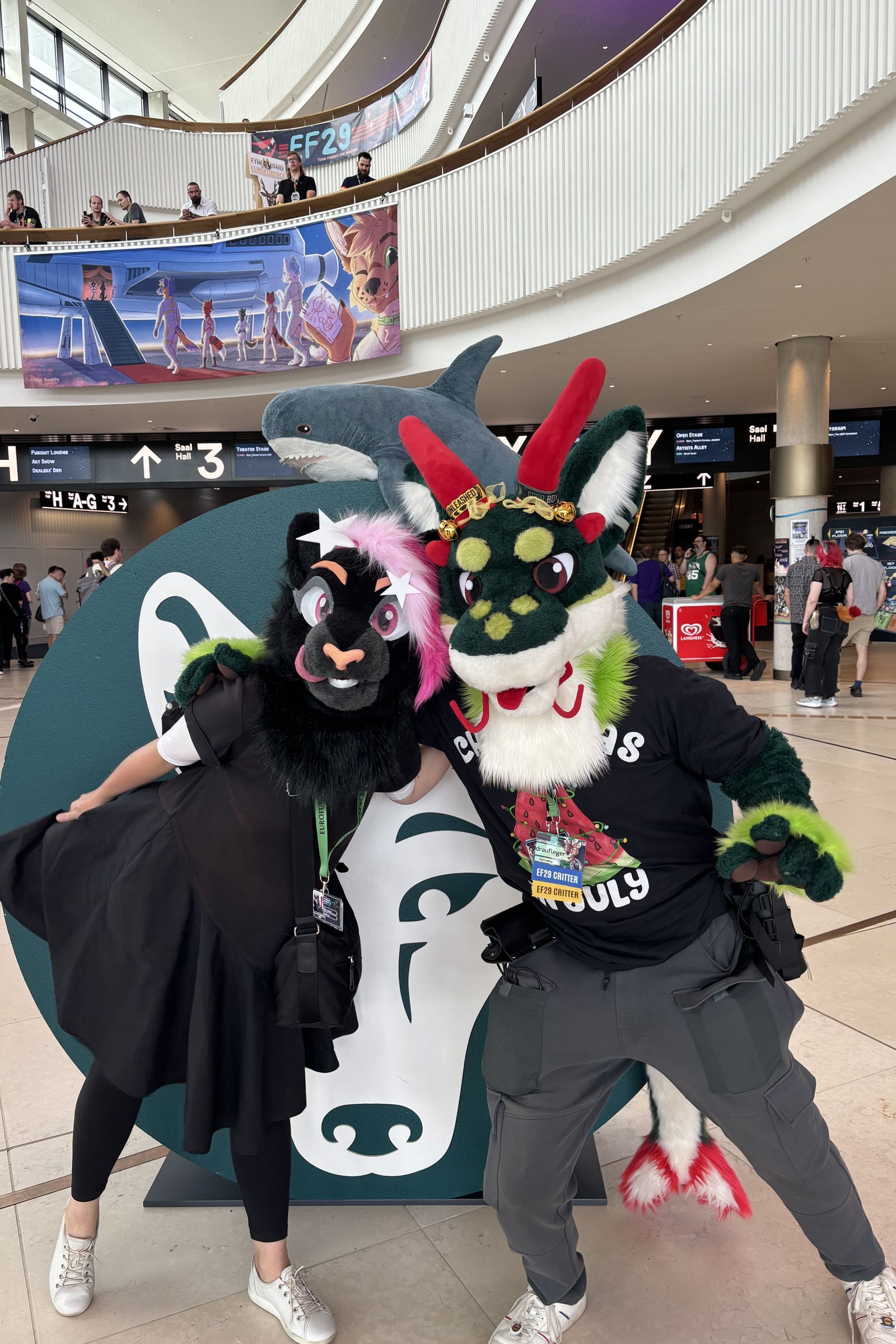 Alex Noire with Uncle Kage, chairman and chief organizer of Anthrocon and client Draufleger at Eurofurrence 2025